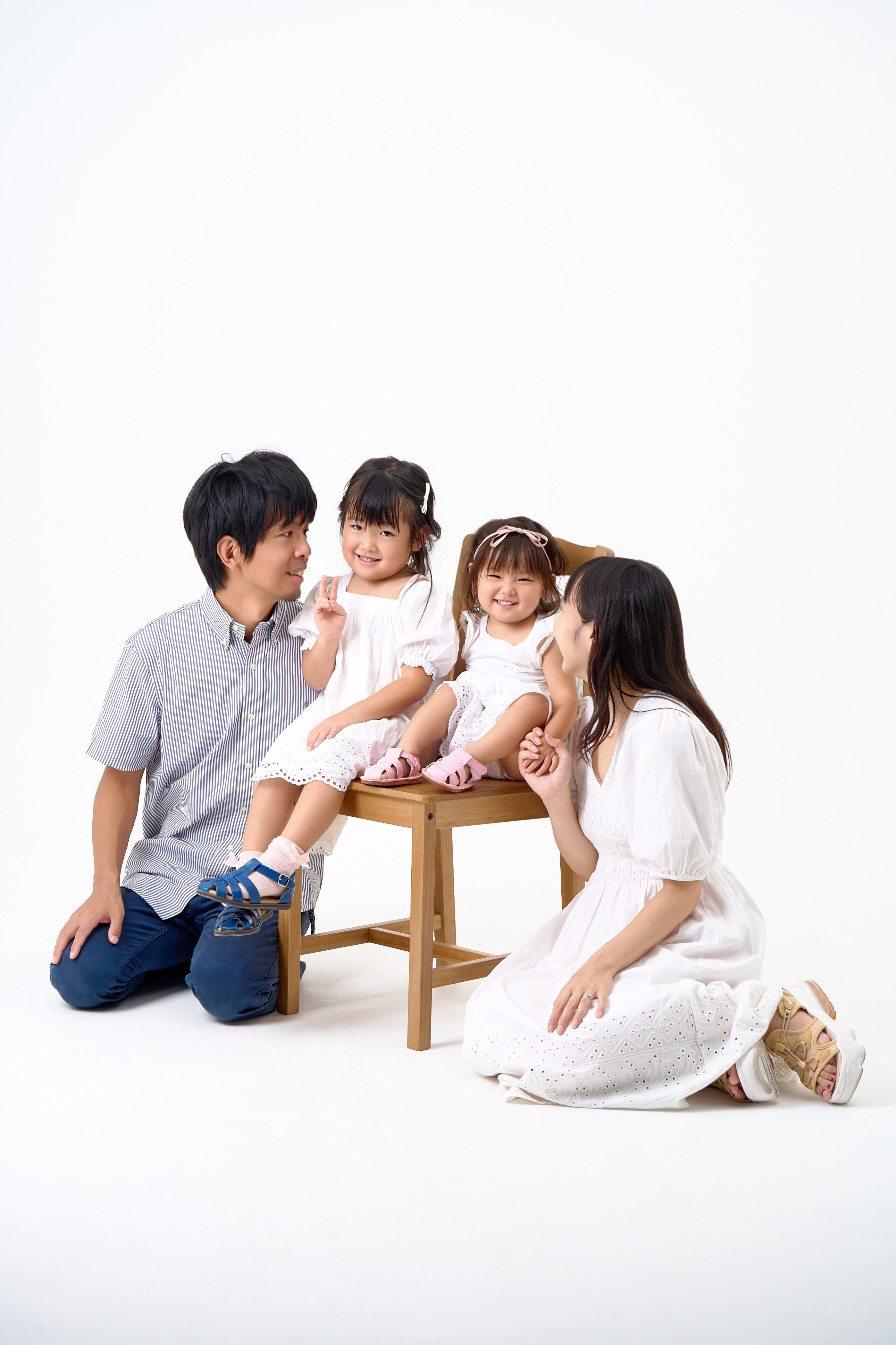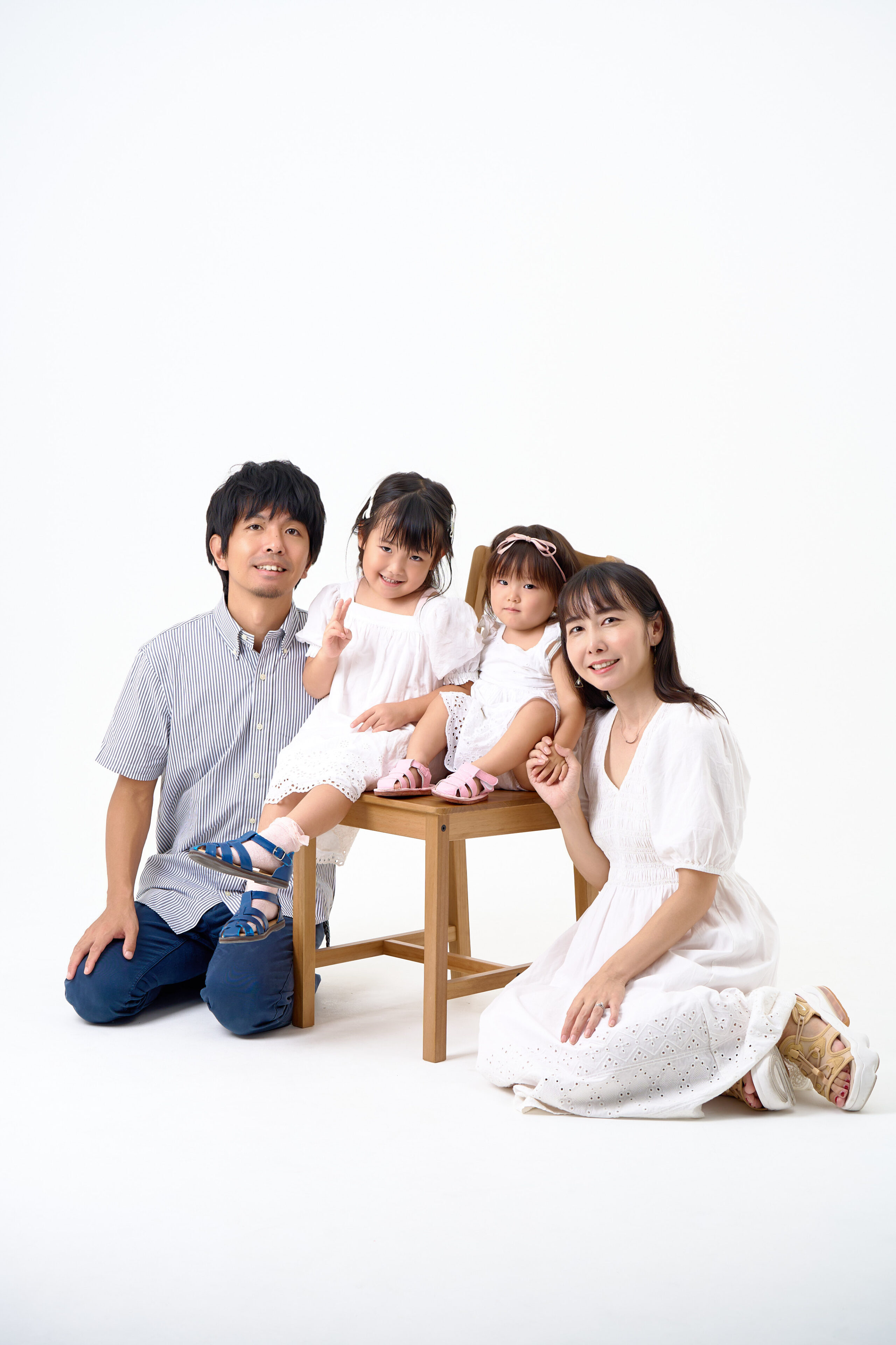 家族写真の撮影です。プロのカメラマンがご家族が自然体のままでいられる空間をつくり、最小限の小道具を使い、ご家族の笑い合う姿やふとした仕草まで、「いつもの家族らしさ」を写真に残せます。