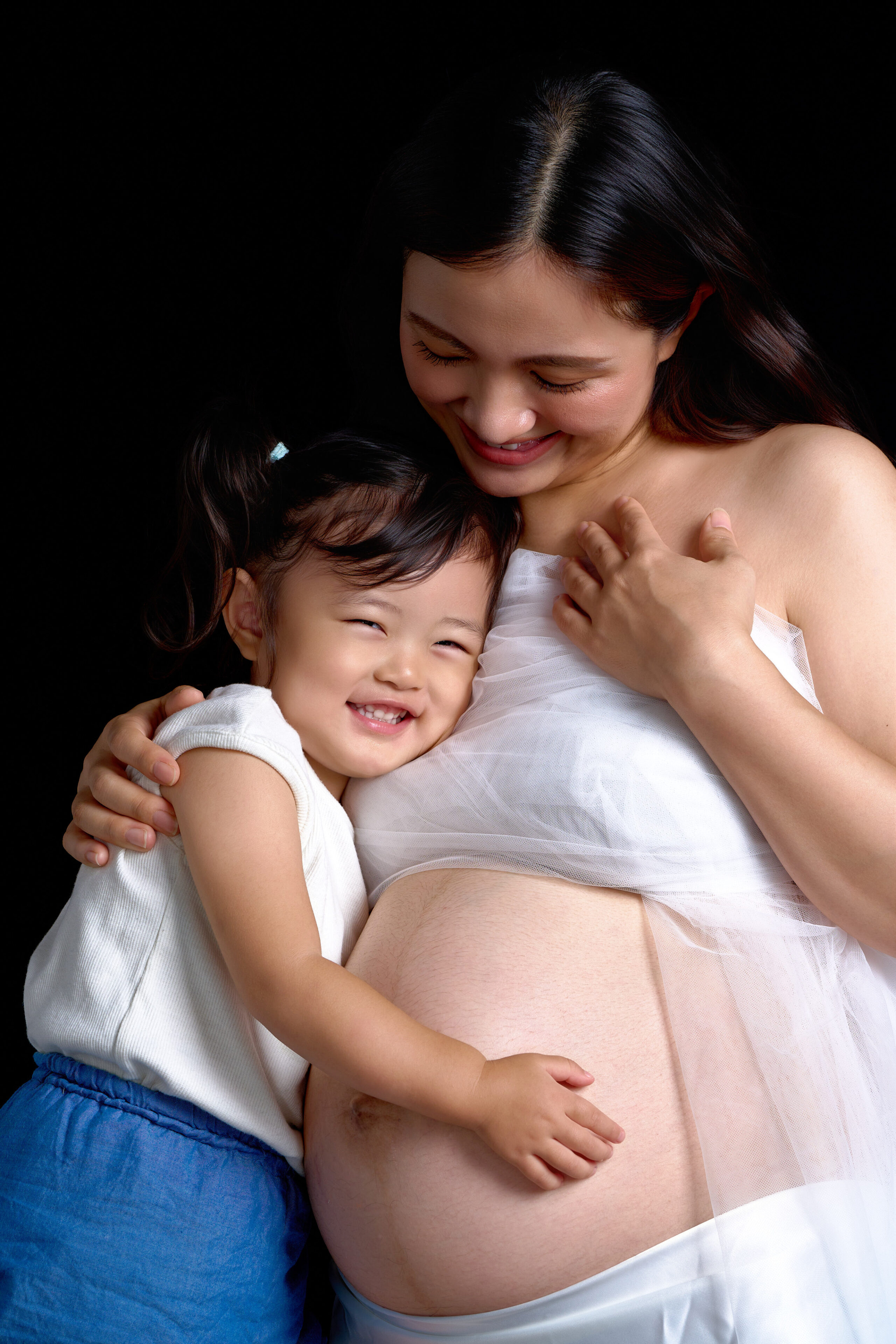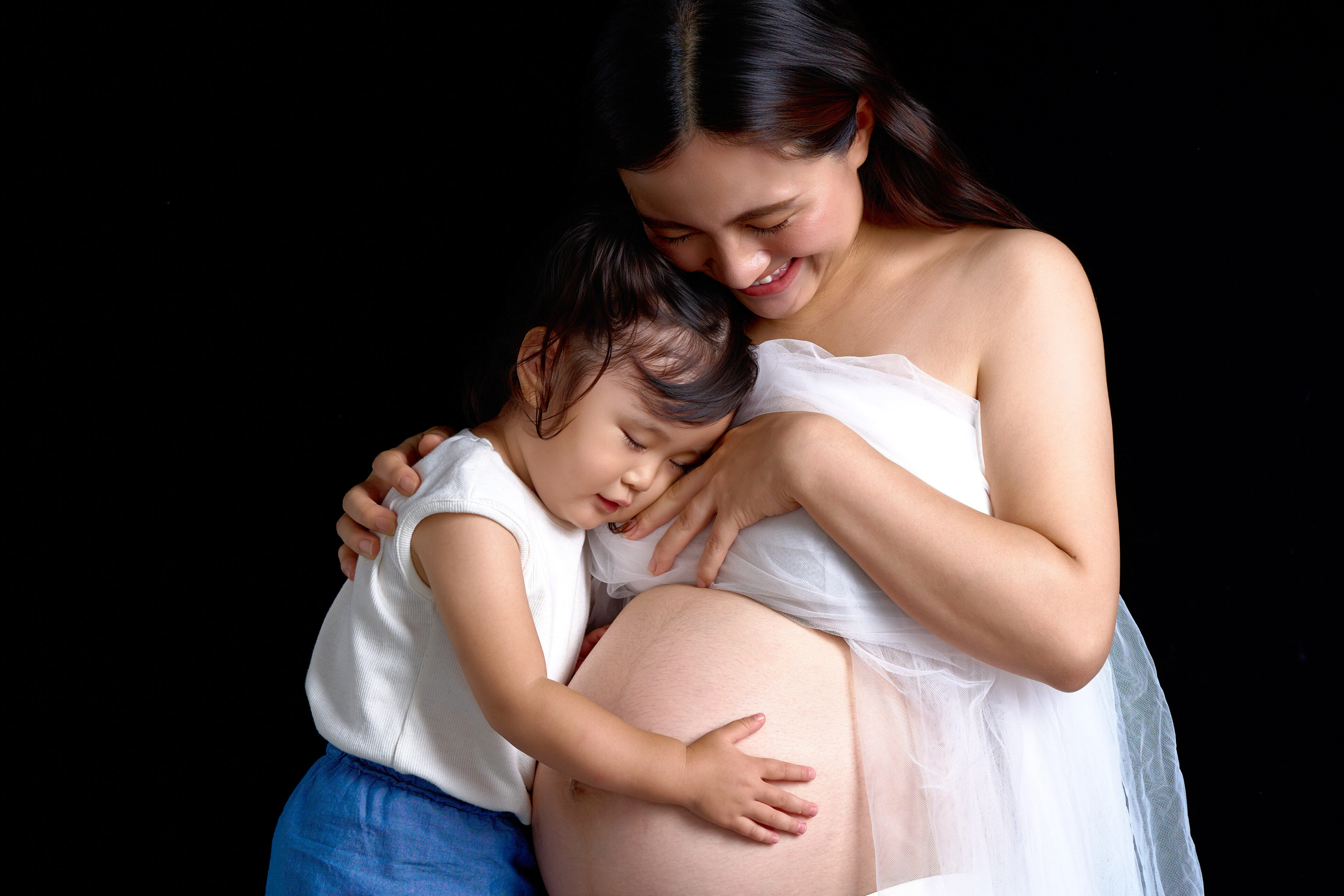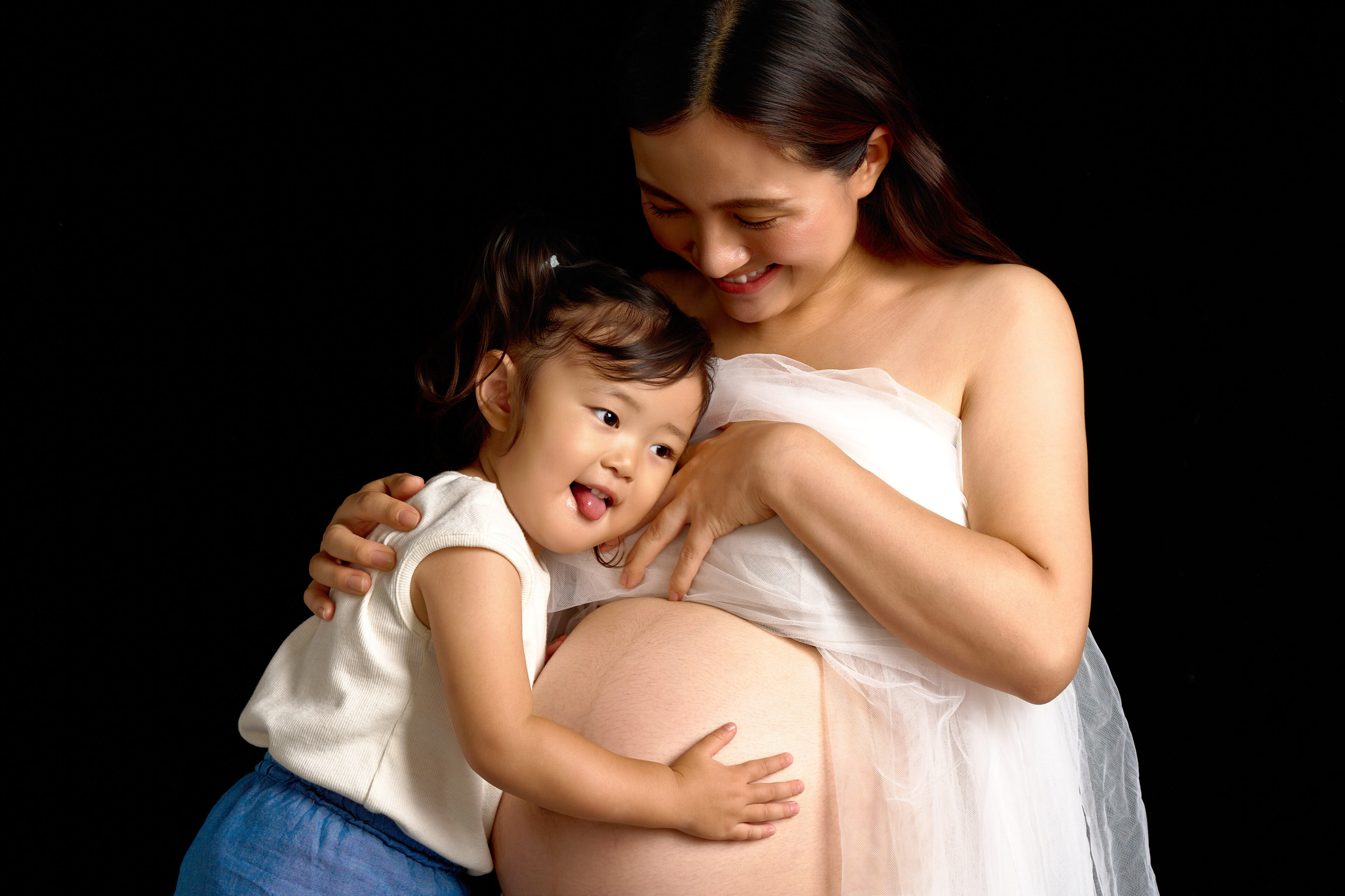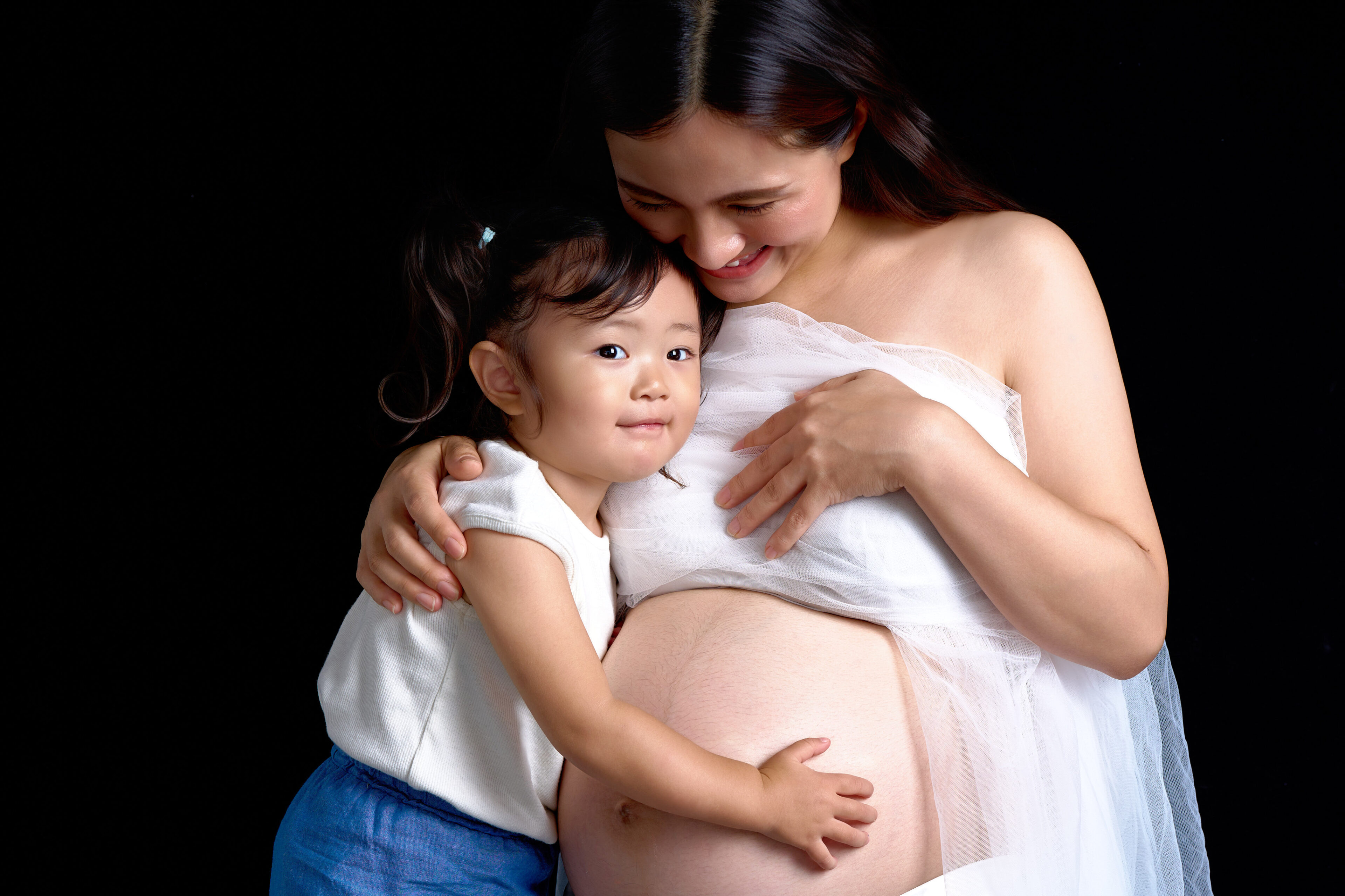 お兄ちゃんやお姉ちゃんと一緒に撮影することで、お腹にいる赤ちゃんを迎えるご家族の自然な笑顔と絆が際立ち、未来にも大切に残したくなる一枚に仕上がります。