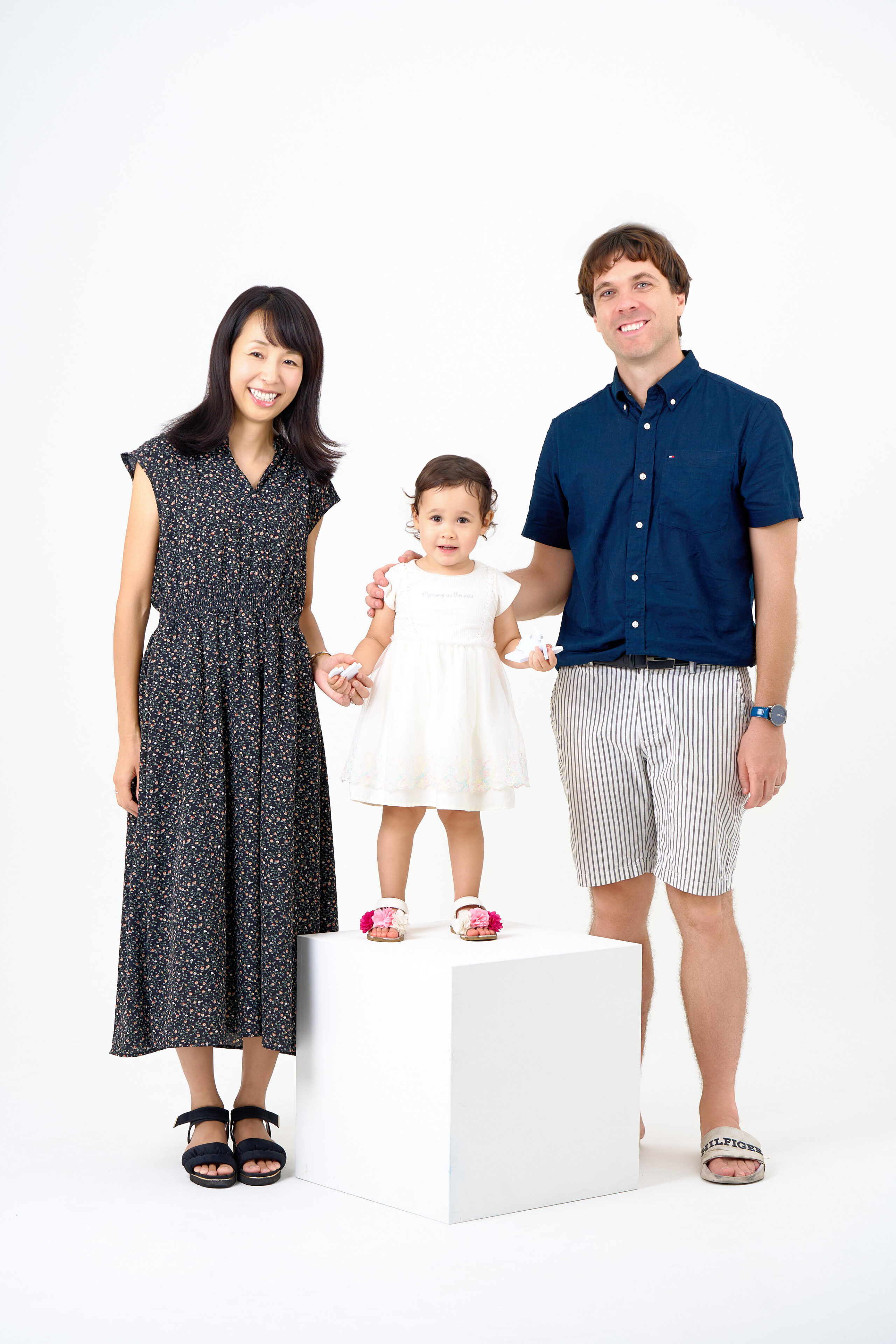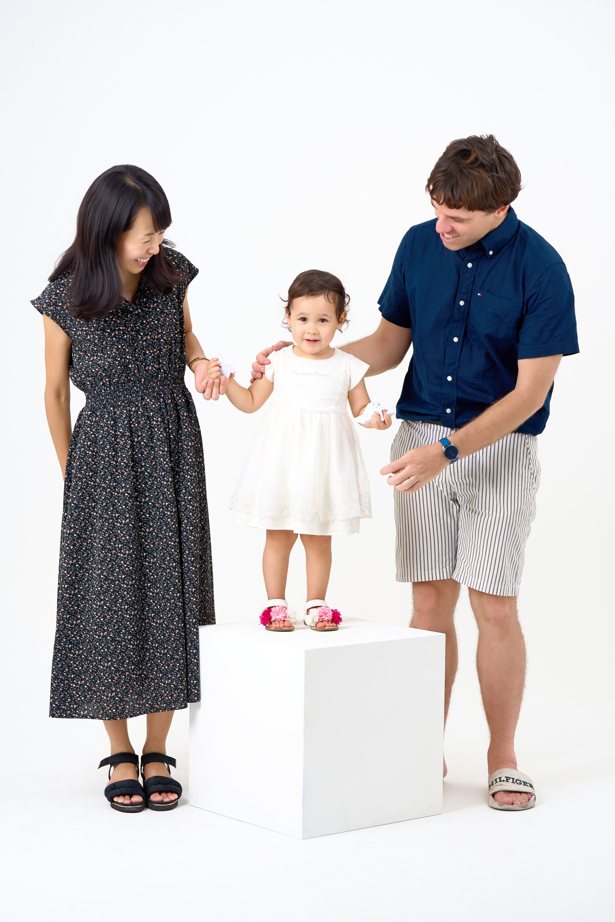 家族写真の撮影です。自然な笑顔とリラックスした表情を引き出すため、和やかな空間を作り、ご家族の楽しい雰囲気を丁寧に写ります。
