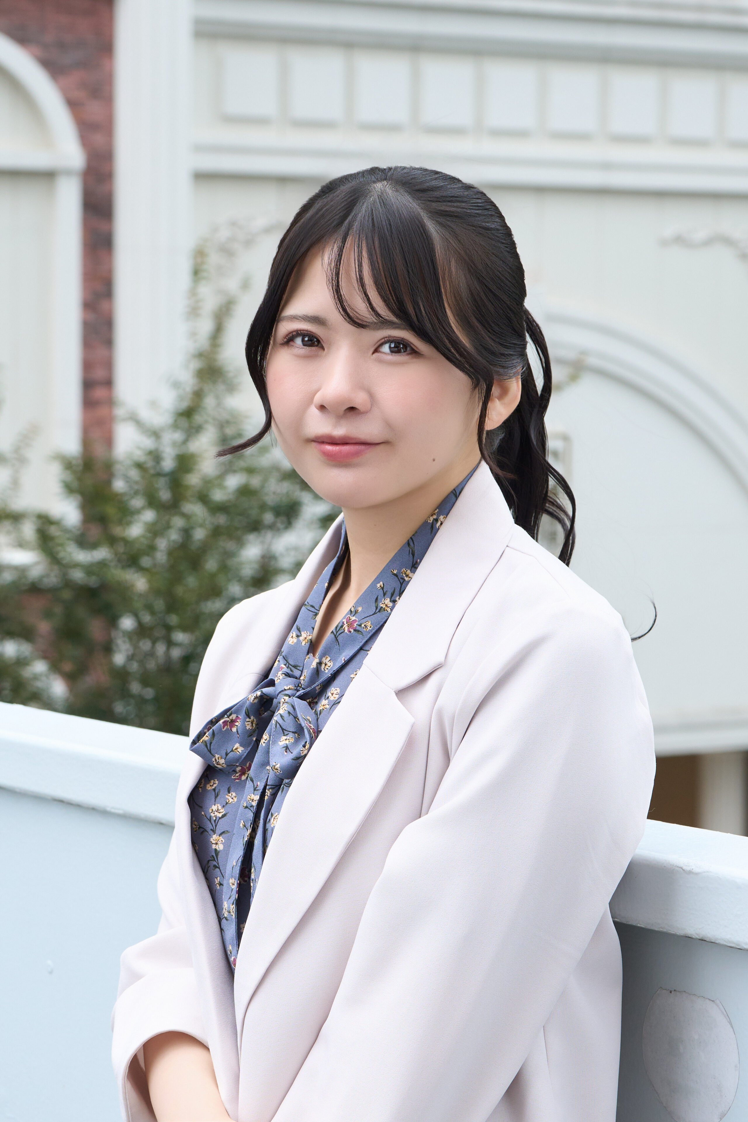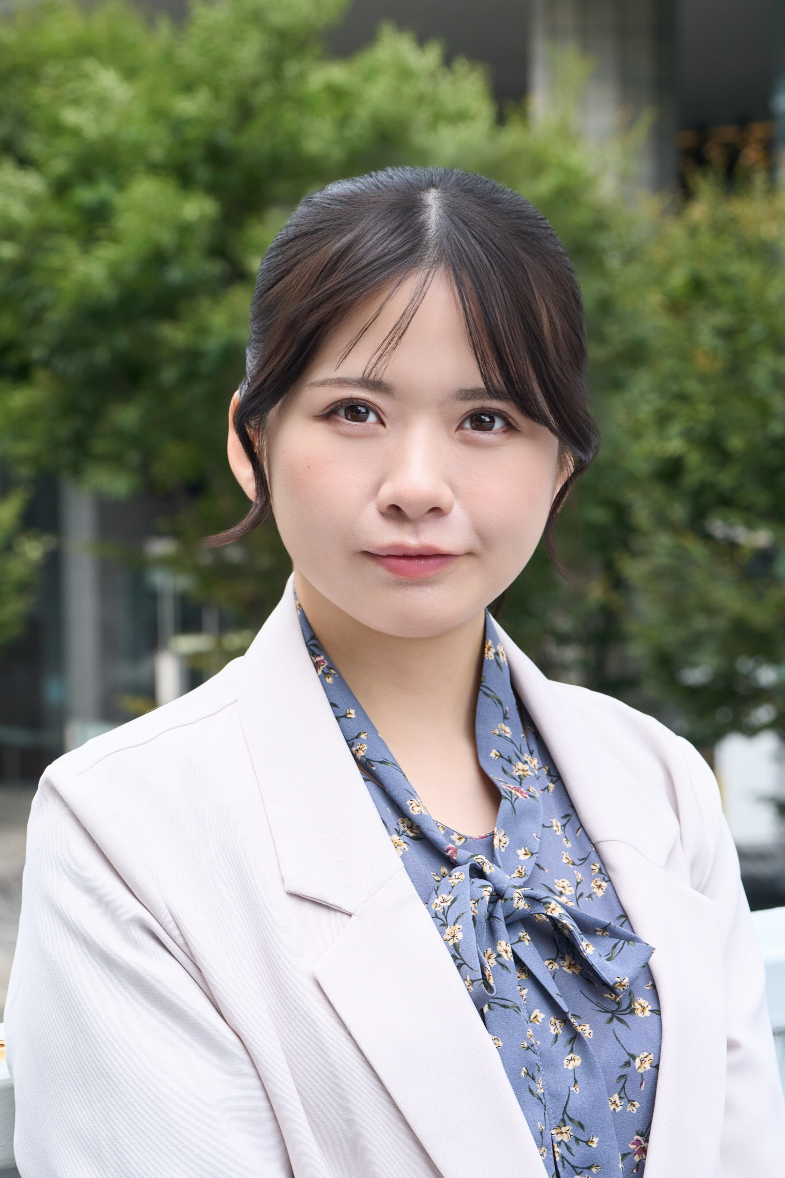 宣材写真のロケーション撮影です。ビジネス系の宣材写真にぴったりな、緑ありつつ、建築物もありつつの都会的なロケーションが清潔感と親しみやすさを自然に演出します。背景に柔らかなボケ感が生まれることで、好印象で信頼感のある1枚に。