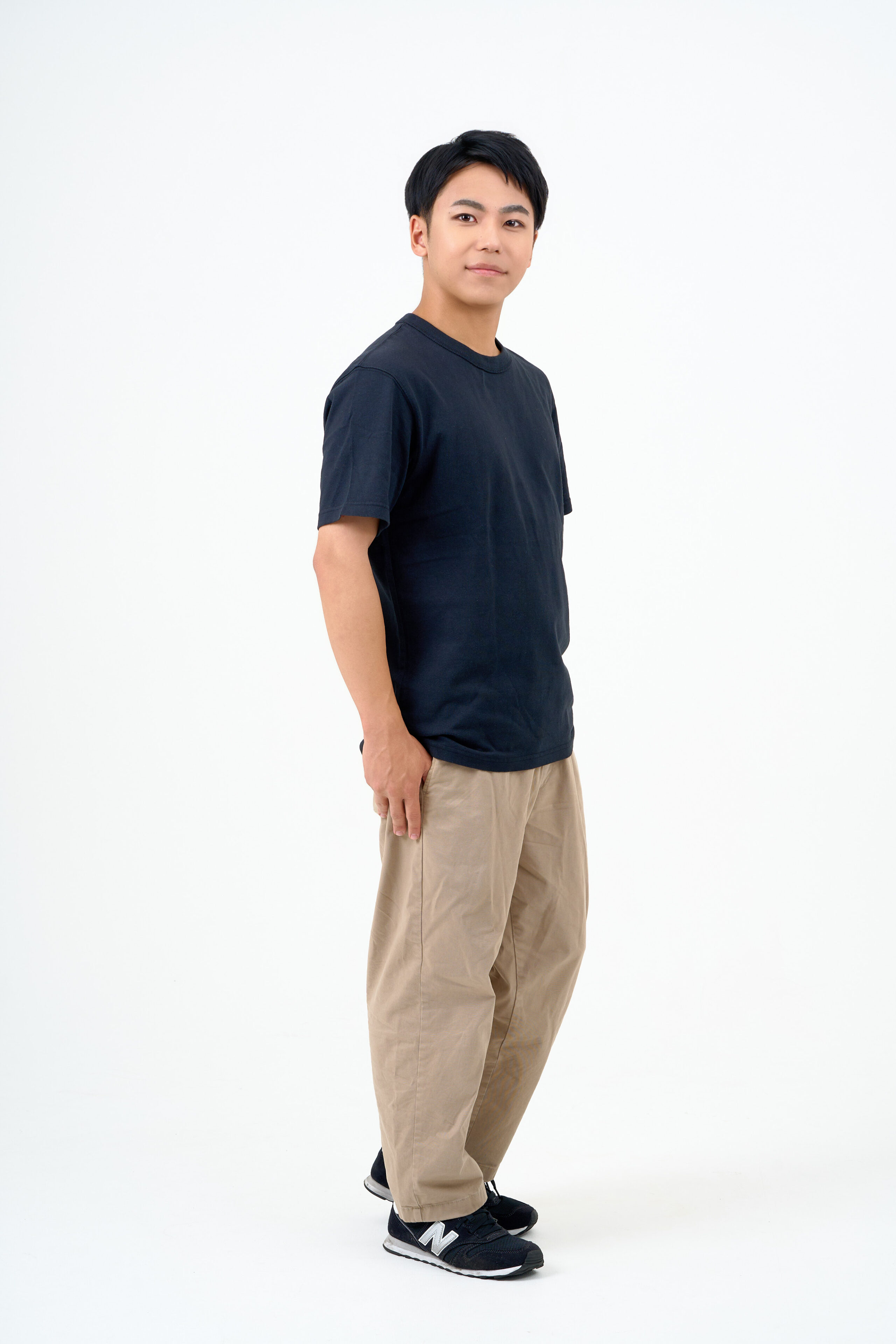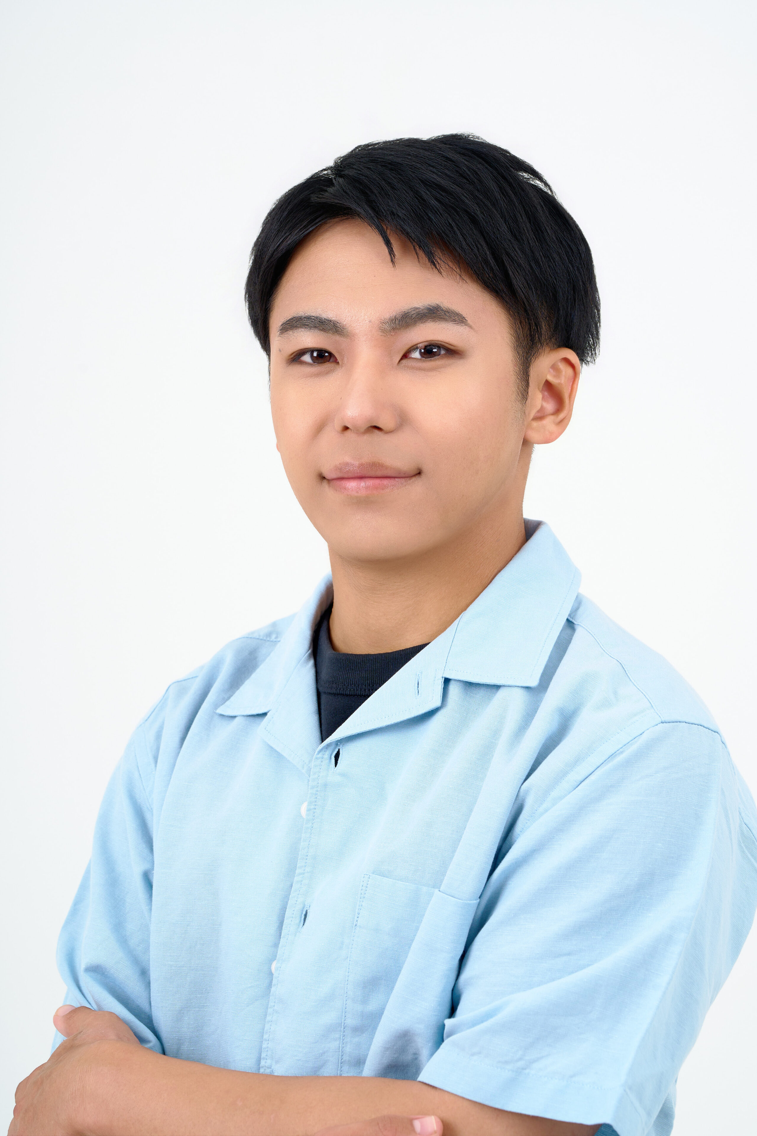 宣材写真の撮影です。自然で爽やかな印象を引き出しました。ポージングはシンプルに整え、本人らしさがしっかり伝わる一枚に仕上げています。