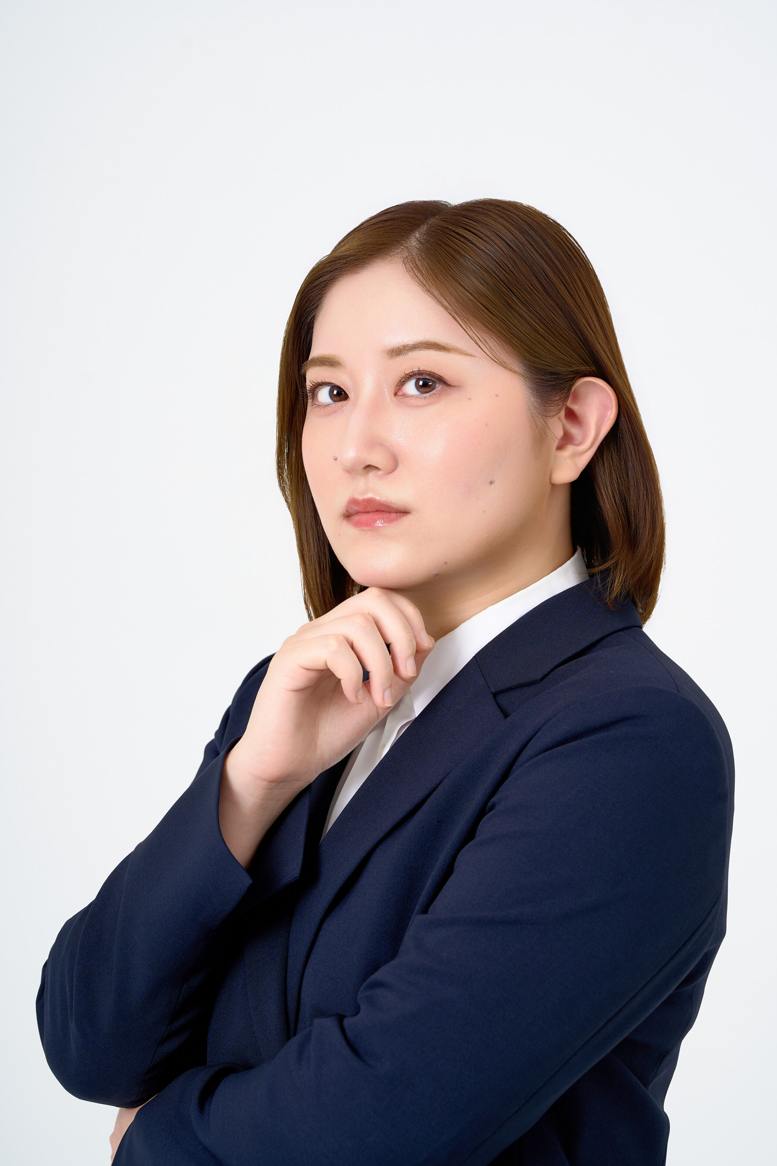 ビジネス用プロフィール写真の撮影です。自然な微笑みで信頼感とプロフェッショナルな印象を引き出しています。シンプルで落ち着いたライティングで、引き締まった印象を演出しました。
