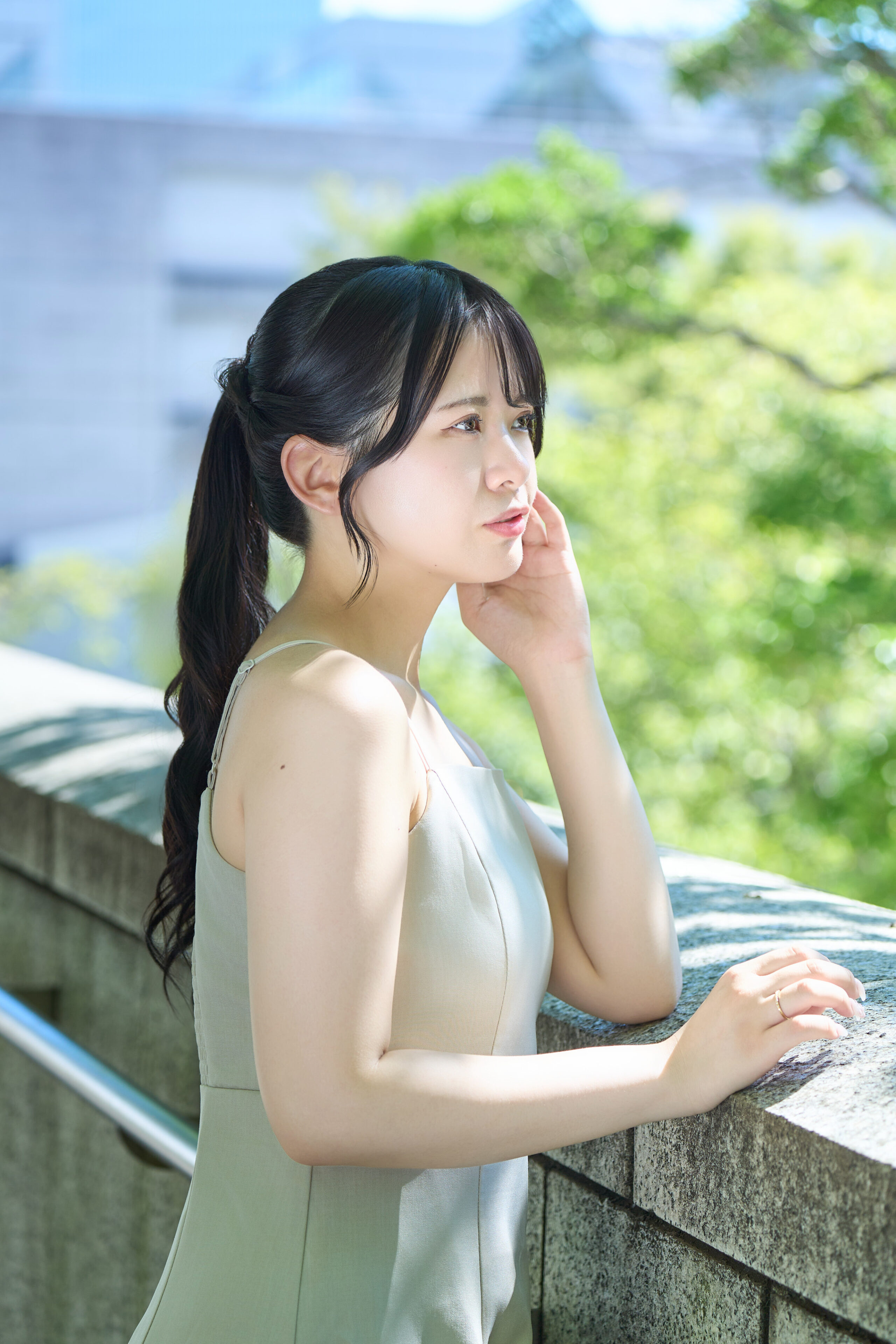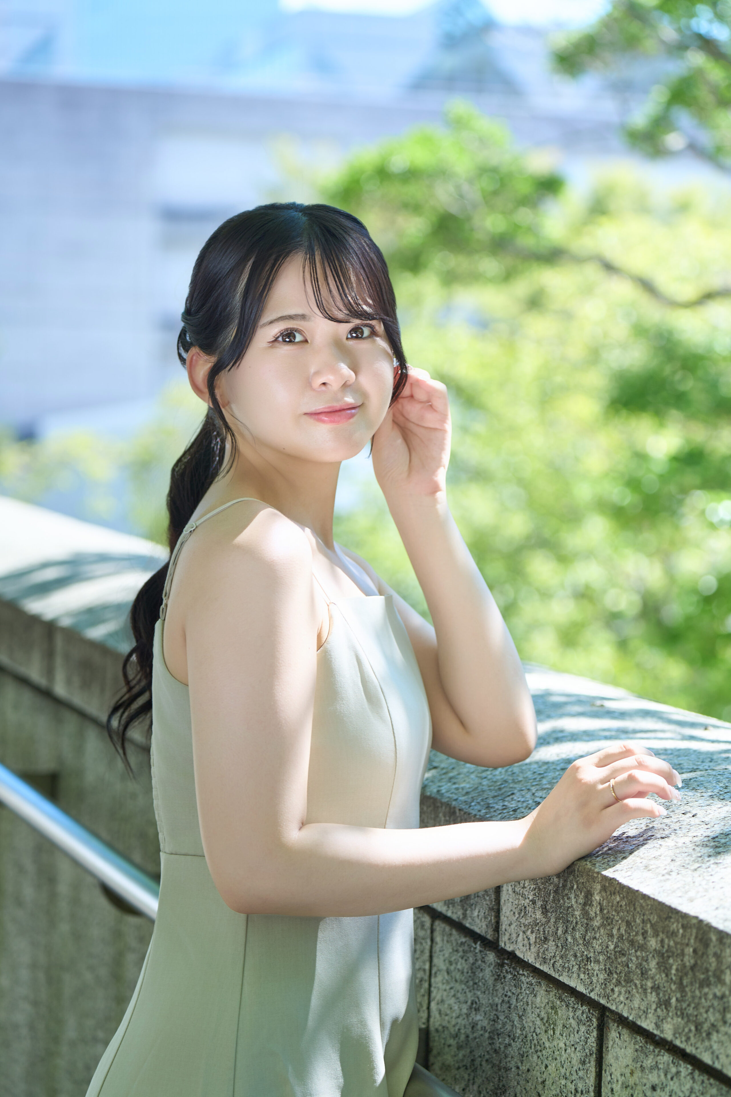 プロフィール写真のロケーション撮影です。緑あふれるロケーションが清潔感と親しみやすさを自然に演出します。背景に柔らかなボケ感が生まれることで、SNSやマッチングアプリ、婚活にも使いやすい一枚に。