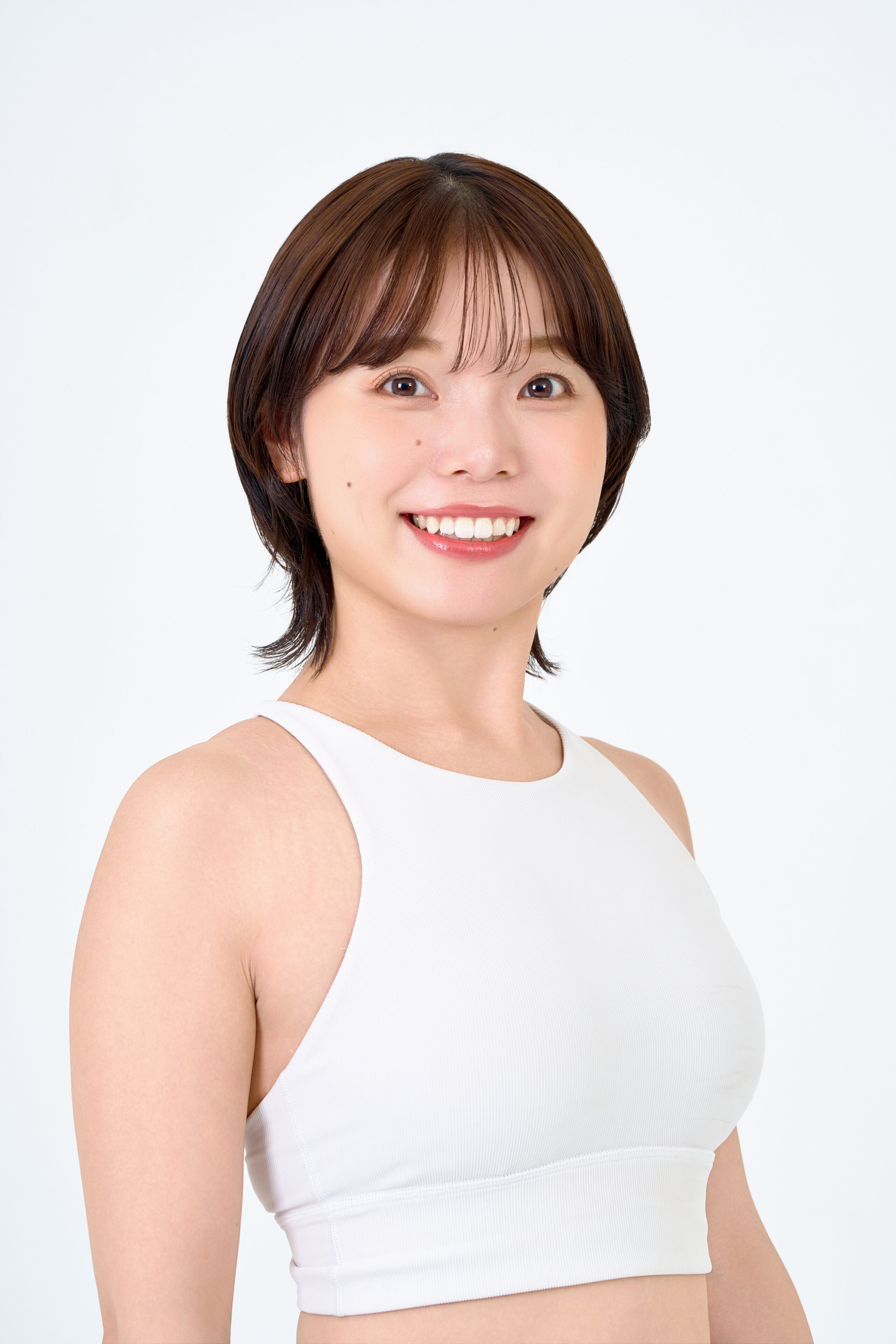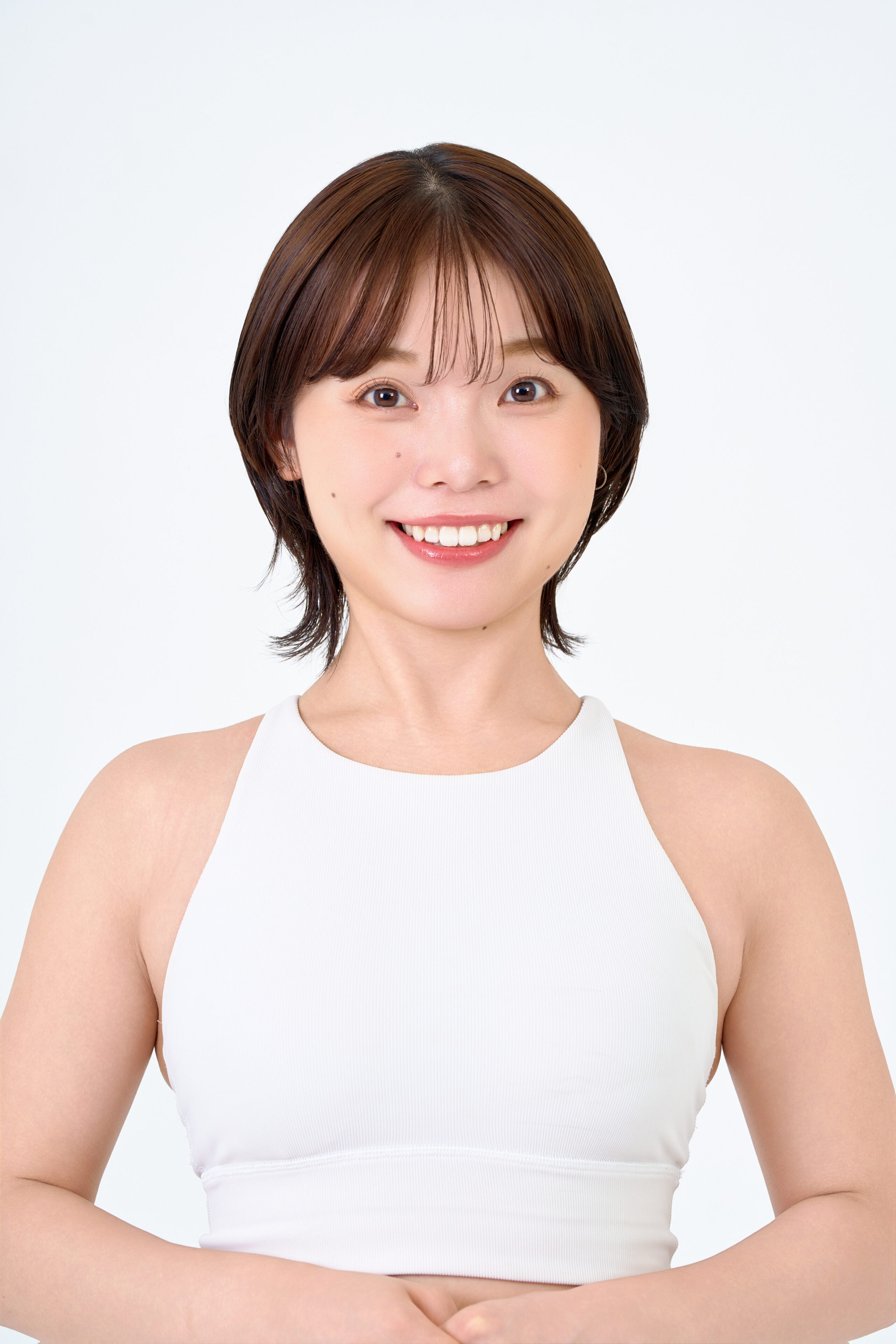 メイクは血色よく魅せるためオレンジ系でまとめました。前髪や顔周りの毛にゆるやかな曲線を持たすことで、お顔の印象をより引き立て、やわらかなイメージを引き出しています。