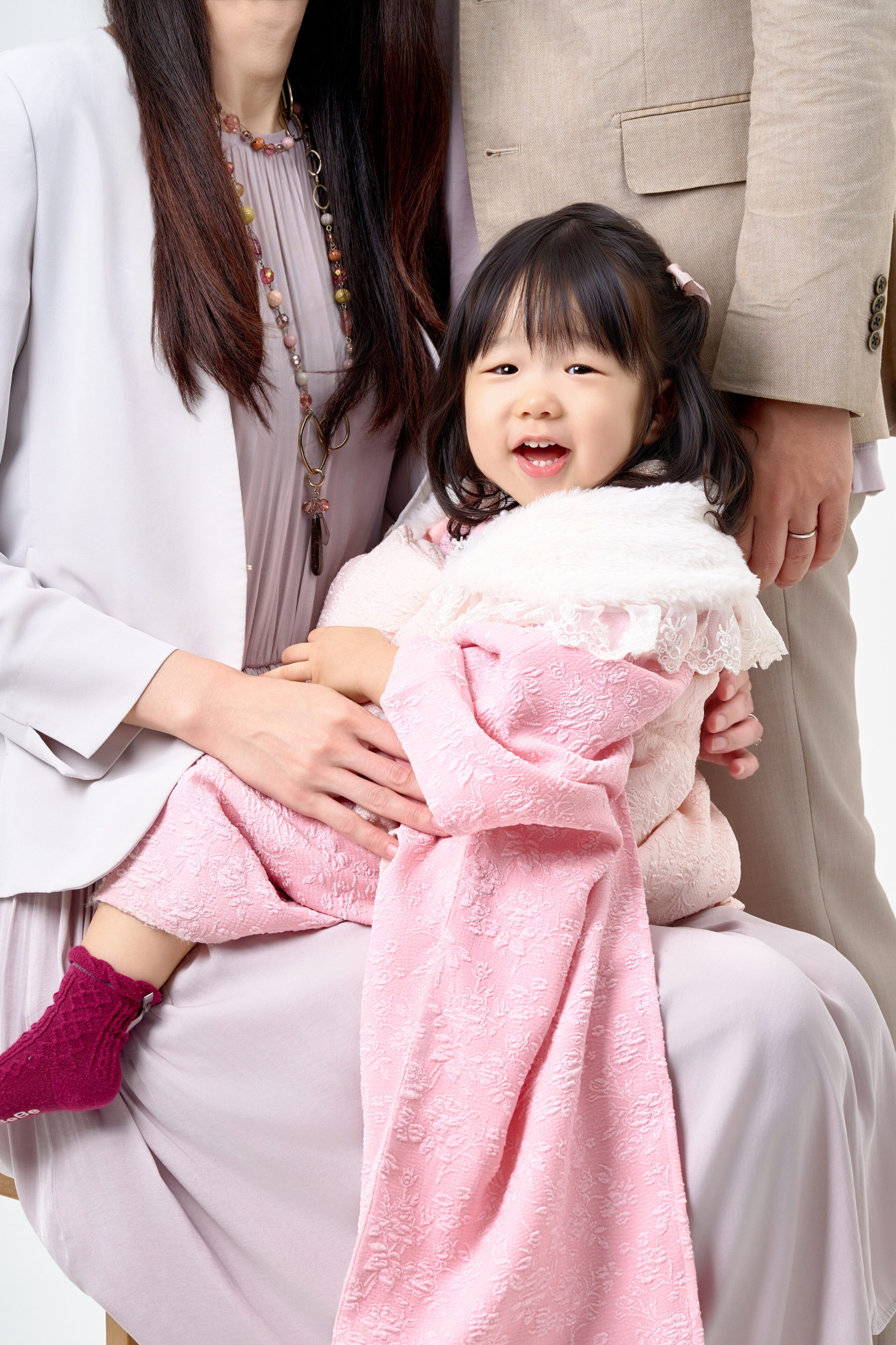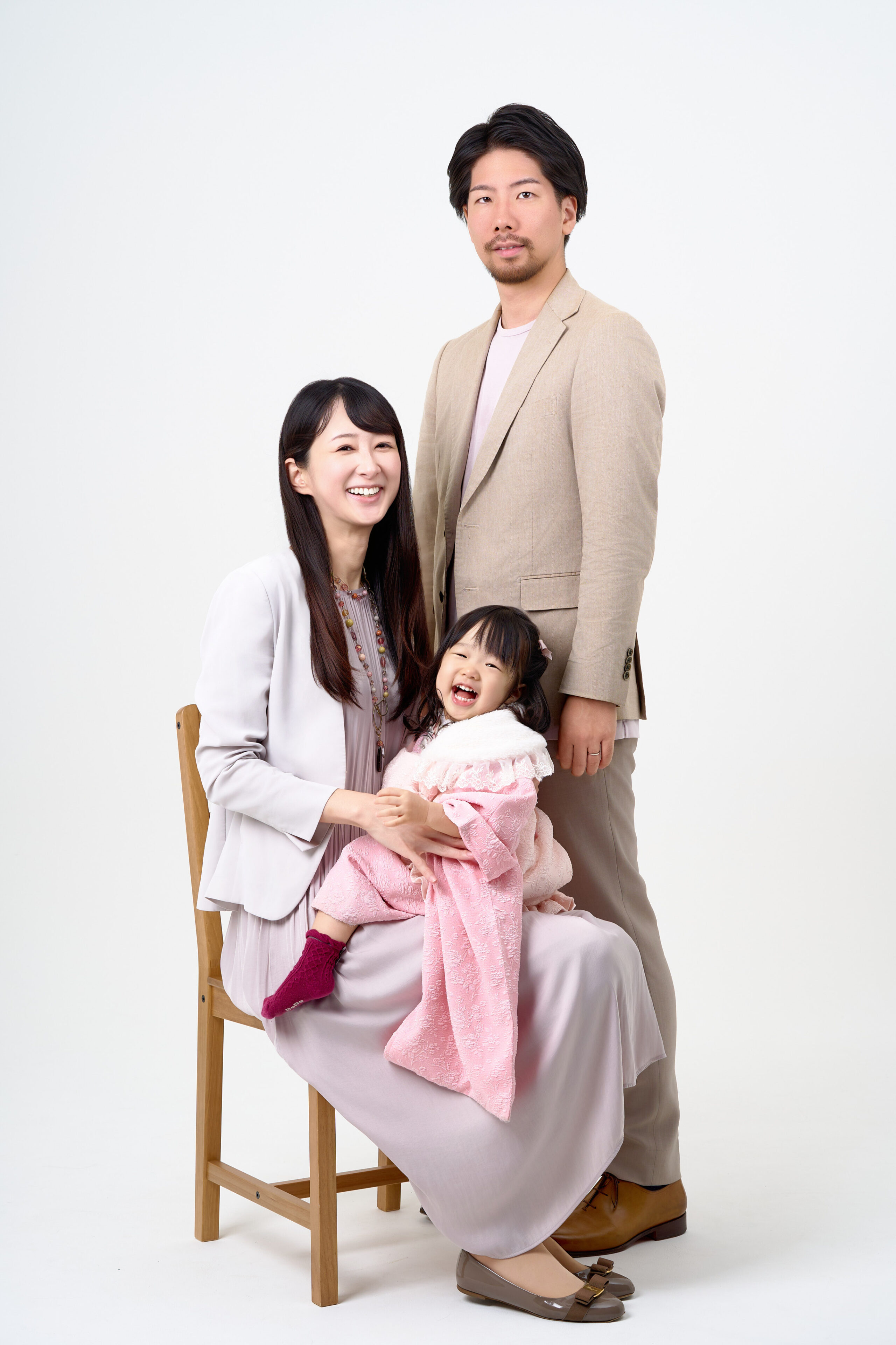 家族写真の撮影です。お子様の可愛らしい表情を大切に捉え見るたびに心があたたかくなる、晴れの日でも、いつの日でも、成長の喜びを感じる一枚を提供します。