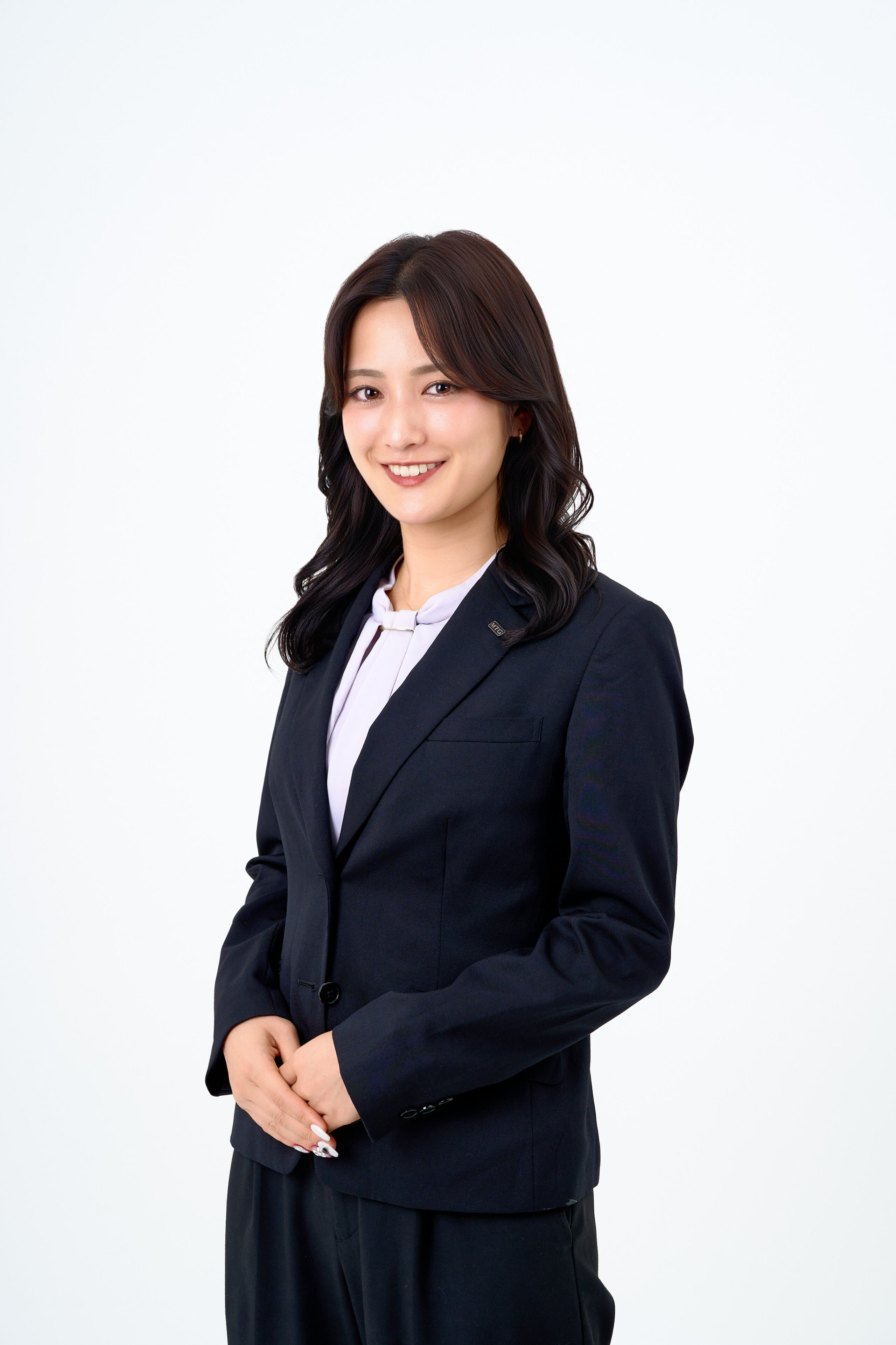 全体的に華やかな印象を作り、ヘアスタイルは巻いて上品で大人な女性らしい印象を演出しました。