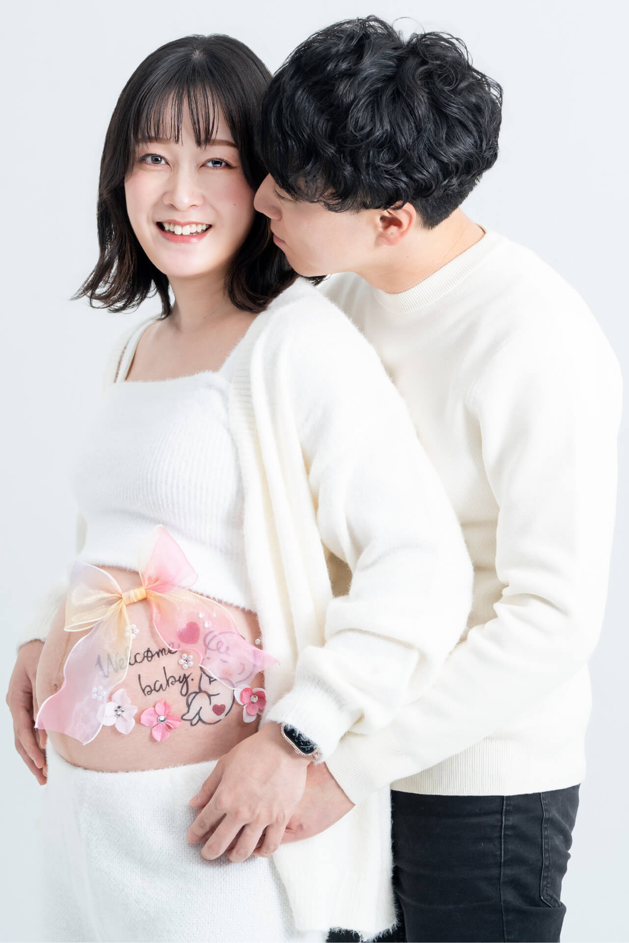 黒背景での撮影は、マタニティ期の特別な美しさをシックかつドラマティックに演出します。 深みとコントラストをもたらす黒ホリで、一生の記憶に残る一枚を撮影してみませんか?